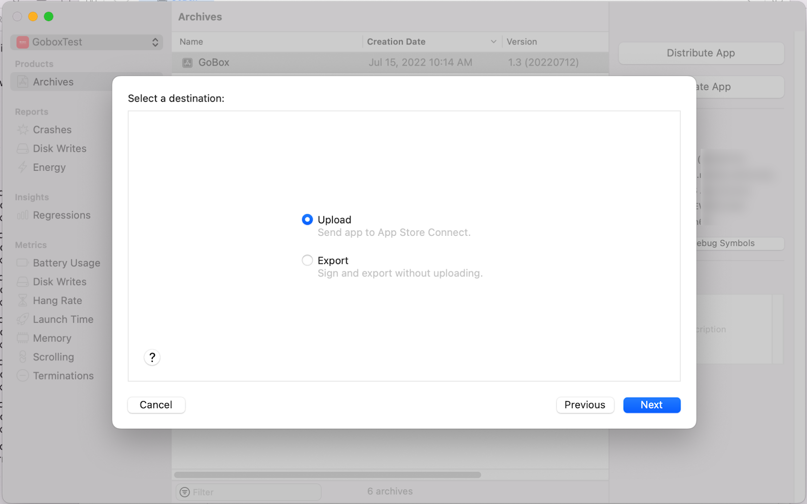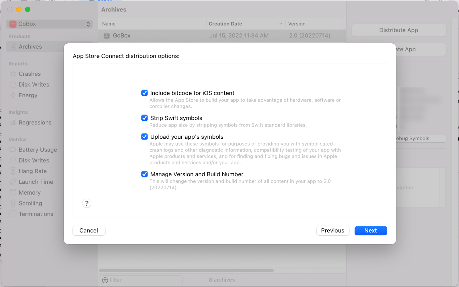 Version, Build 버전 확인 후 Distribute App 버튼을 눌러주세요.