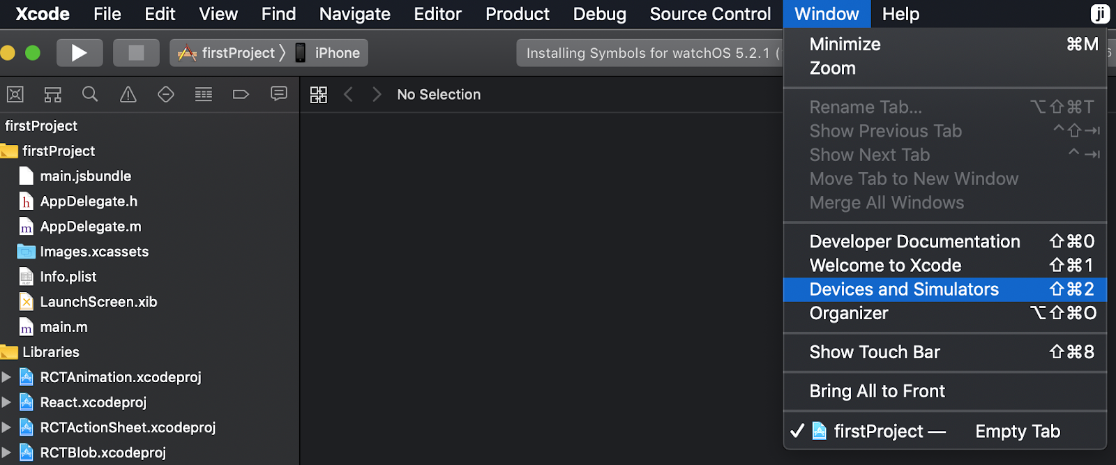 Xcode > Window > Devices and Simulators를 선택해 주세요.