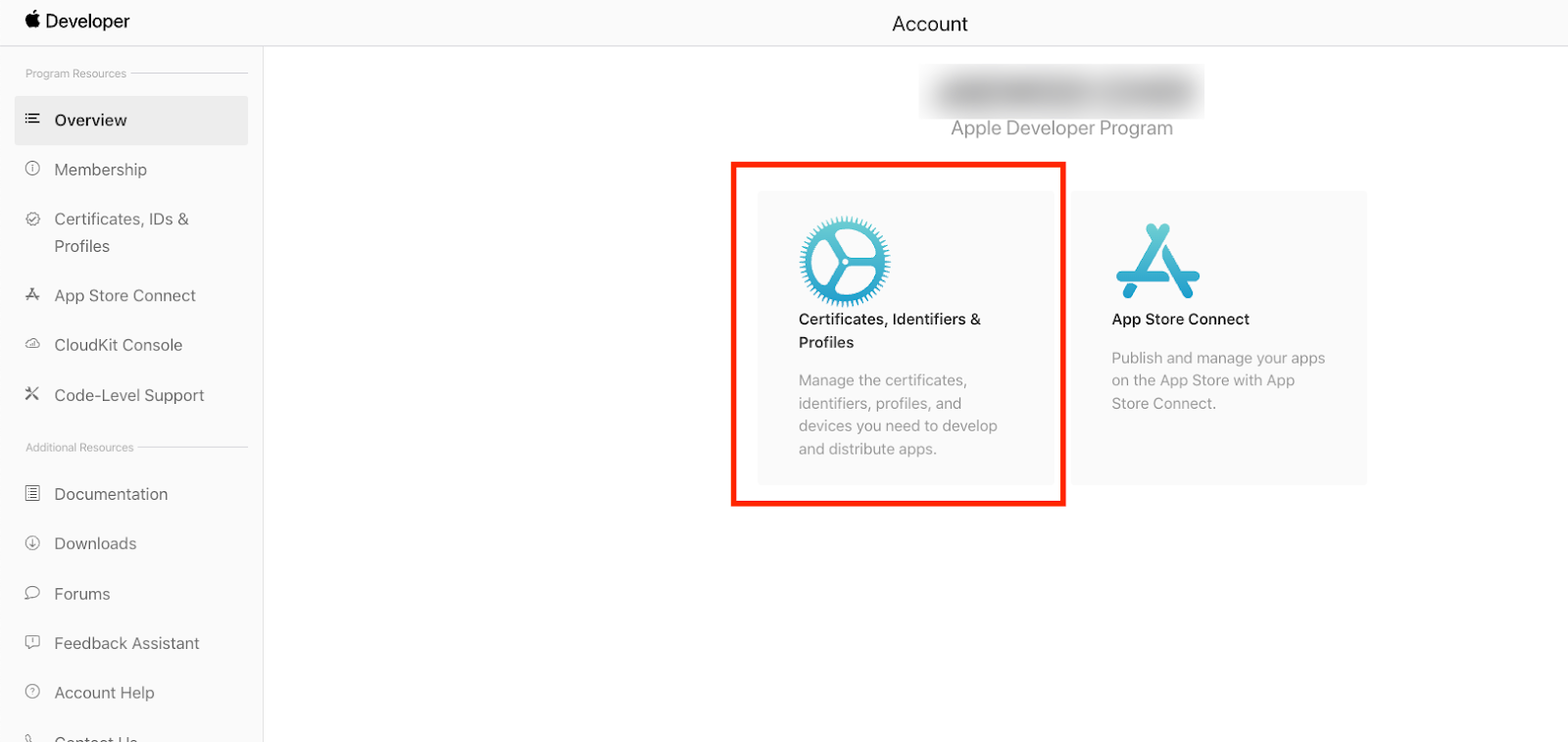 Certificates, Identifiers & Profiles 항목을 클릭해주세요.