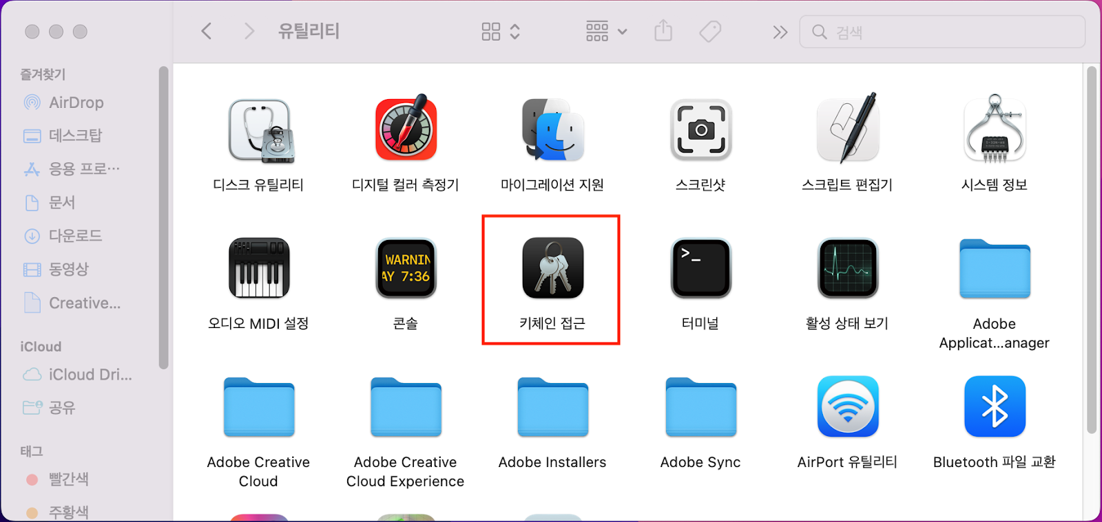 사용하고 있는 맥에서 응용프로그램 > 유틸리티 > 키체인 접근을 실행해주시거나