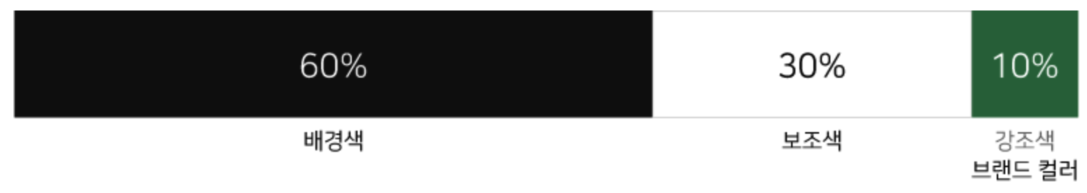 주로 권장하는 색상 비율은 6:3:1이지만 서비스의 성격이나 컨셉에 따라 여러 테스트 후 적절한 비율을 찾아야 합니다.
