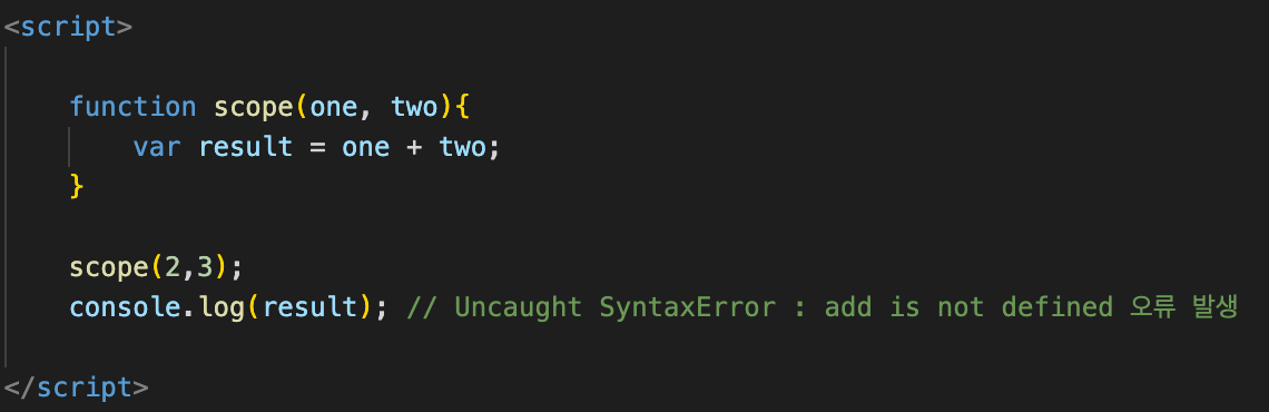 세 번째로는 var로 정의된 변수는 함수 스코프를 가집니다.