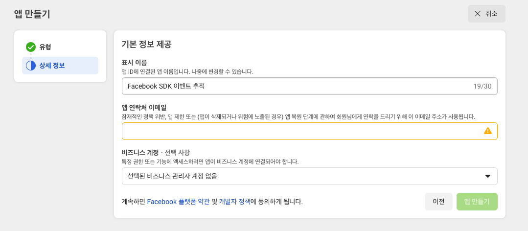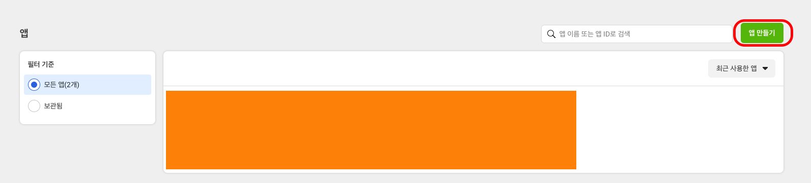 2. 앱 만들기 버튼을 눌러서 앱을 생성해 주셔야 합니다.