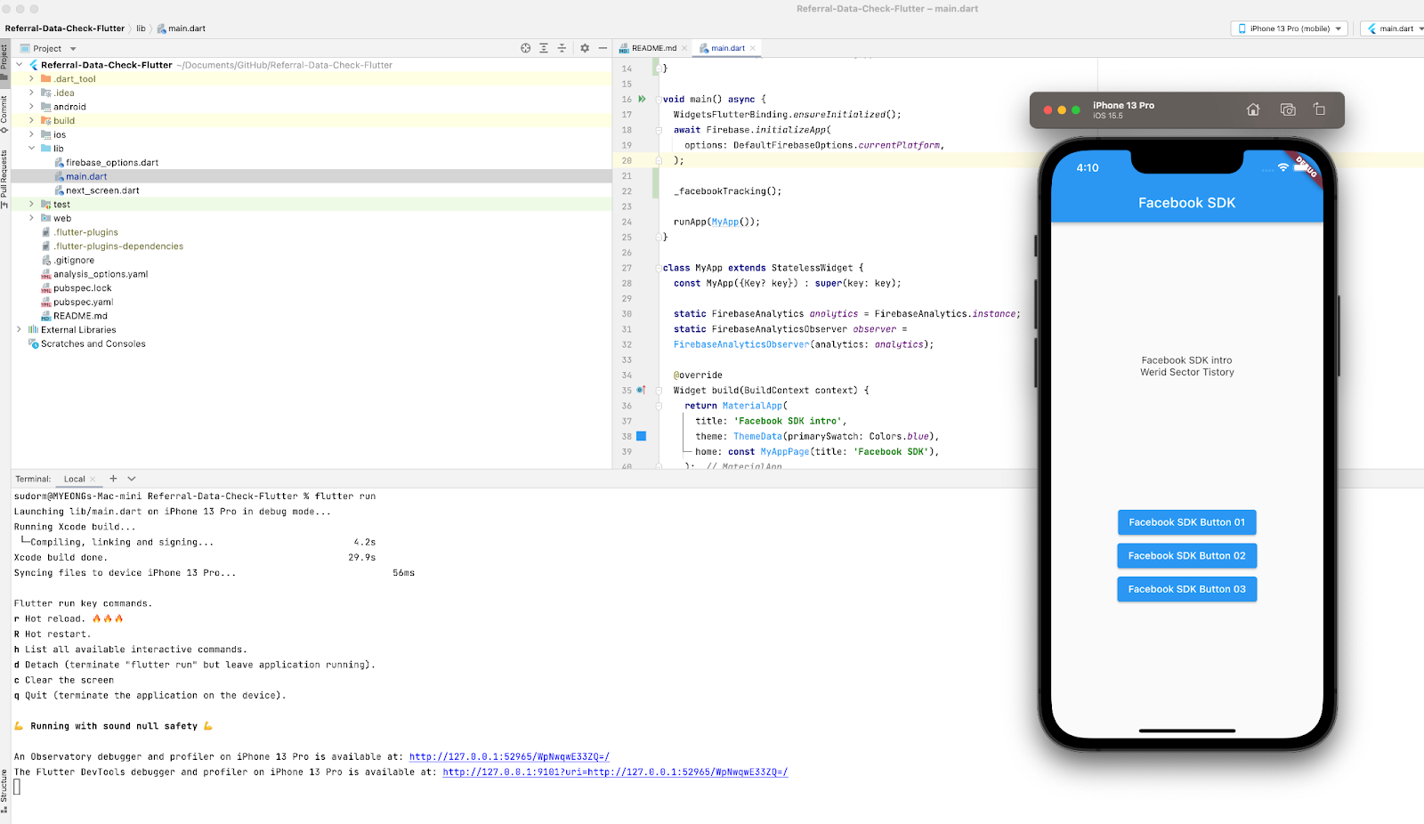 최근 프로젝트를 진행하면서 Flutter iOS 앱으로 통해 사용자가 어떤 버튼을 클릭했는지 확인하기 위해 Facebook SDK 설치 후 테스트를 진행했습니다. 기업 입장에서는 사용자가 어떤 버튼을 많이 클릭했고, 어느 분야를 좋아하는지 알고 싶지만 기본 기능으로는 확인할 수 없기 때문에 Facebook SDK를 활용해서 그 방법을 적어보려고 합니다.