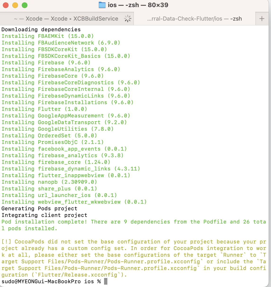 10. facebook_app_events 플러그인 설치 후 터미널 실행