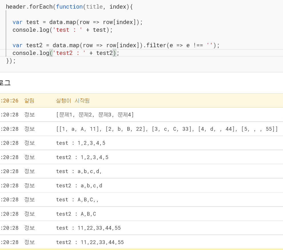 Logger.log(data) 를 통해서도 빈 값이 있는 것을 확인할 수 있죠!