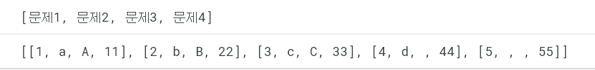 지금은 각 row ( 가로 - )로 나왔으나 저희는 문제를 기준으로 열 ( 세로 | )로 나와야 하기 때문에 가공을 해보겠습니다.