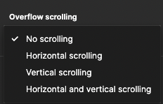 스크롤을 만들 프레임을 선택하면 [Overflow Scrolling]에서 스크롤을 설정할 수 있습니다.