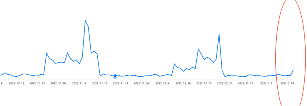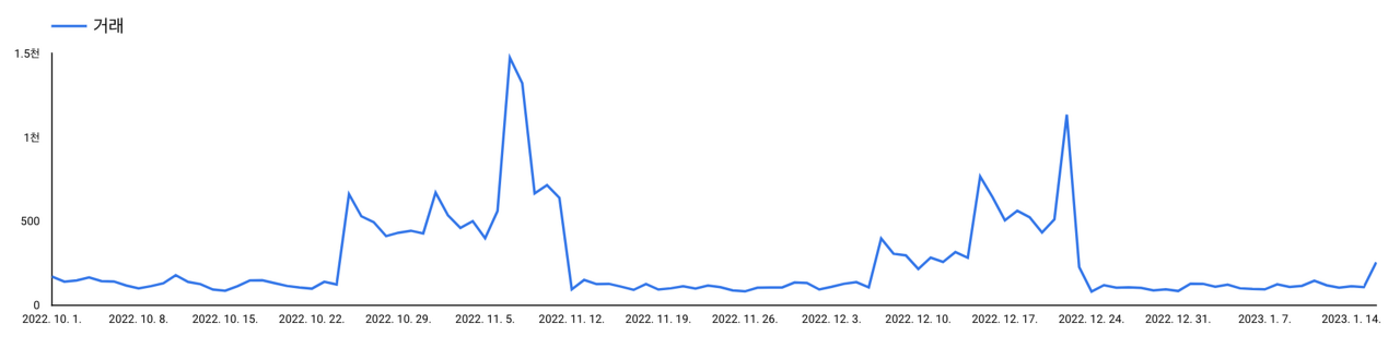 우리의 미래의 그래프는 어떨까요? 만약 이 패턴이 계절성의 패턴이라면 글을 쓰는 1월 20일 시점이 첫 번째 봉우리가 만들어지는 시점이겠죠? = 거래가 늘어난다.