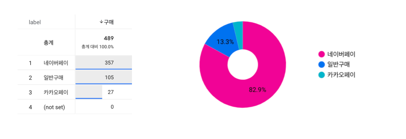 매개변수를 기준으로 데이터 살펴봅니다. 이렇게 보니 네이버페이, 일반구매, 카카오페이 중 어떤 방식으로 결제가 많이 이루어지는지 확인이 가능하죠?