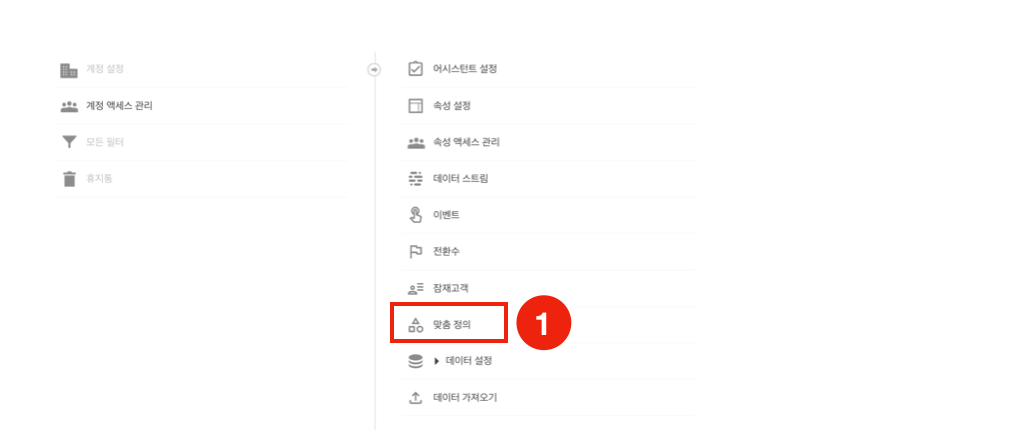 step 1. GA4 관리에서 맞춤 정의를 누르시고,