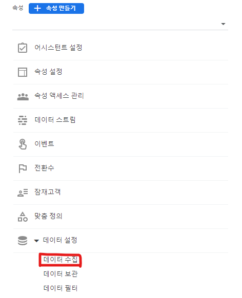 - ‘속성’의 데이터 설정> 데이터 수집 클릭
