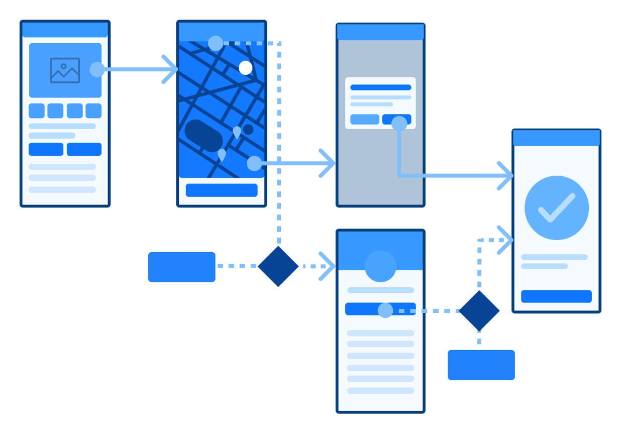 현재 프로젝트에서 화면 디자인이 마무리 된 시점이라면, 개발자가 가장 궁금한 내용은 ‘어떻게 화면이 흘러가는가’ 일 것입니다. 실제 어떤 흐름으로 화면이 설계되었는지 보여준다면, 아래와 같은 효과를 얻을 수 있습니다.