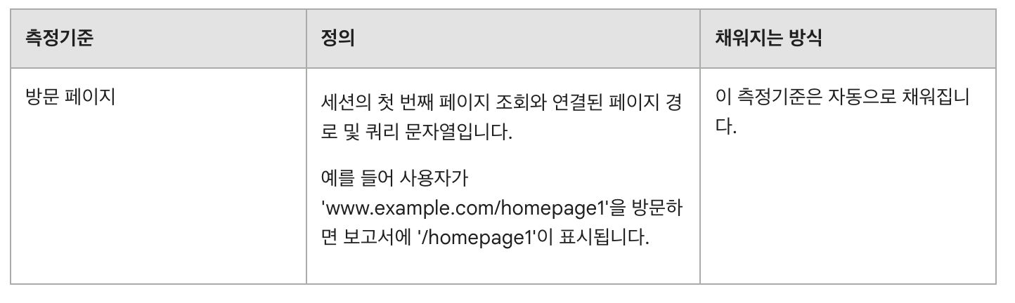 이번 글에서는 탐색리포트의 측정기준에 디폴트로 선택 가능한 페이지 관련 지표를 정리해 보고자 합니다.