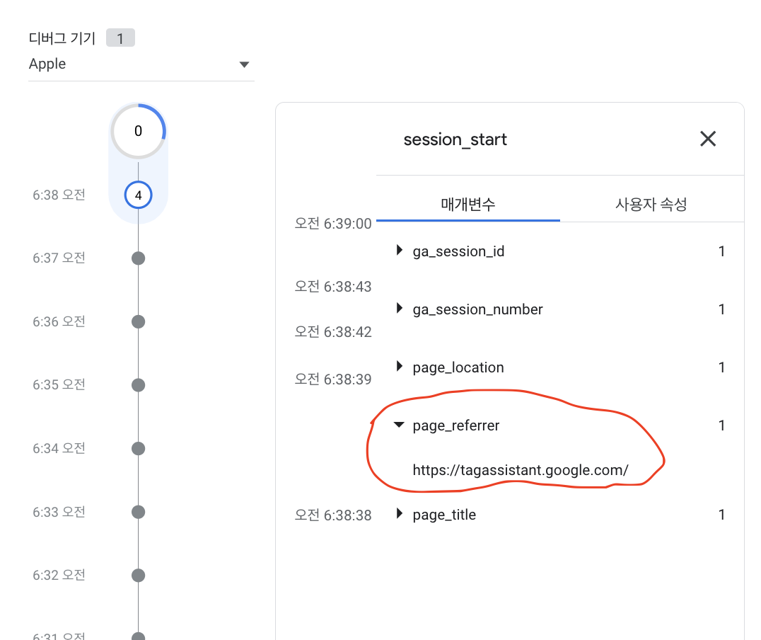 마찬가지로 모든 이벤트에 page_referrer라는 이름으로 수집되는 것 입니다.