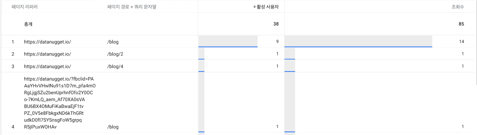 아마 페이지 기반의 분석을 하실 때는 가장 많이 사용하는 지표가 아닐까 싶습니다.