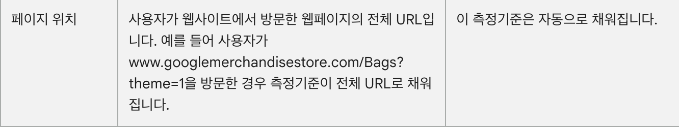 페이지 위치는 앞에서 페이지 경로와 같이 수집되는 값 입니다. 다만 페이지 경로가 도메인 뒷 부분부터 입력이 되기 때문에 도메인을 모두 포함했다고 이해하시면 되세요.