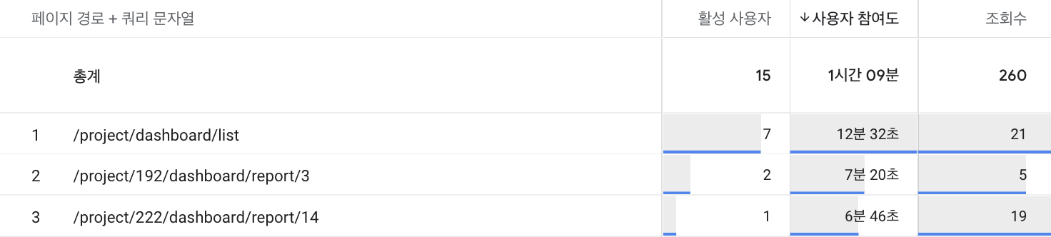 페이지별로 얼마나 머물렀는지 확인하기 위한 페이지별 참여도 = 페이지 경로 + 사용자 참여도