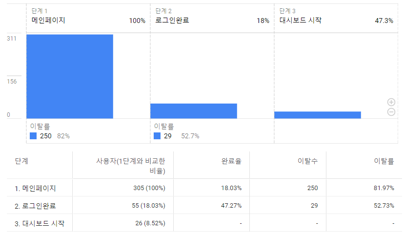 step 6. 단계수정을 저장하면 아래와 같이 퍼널 그래프가 나타납니다.
