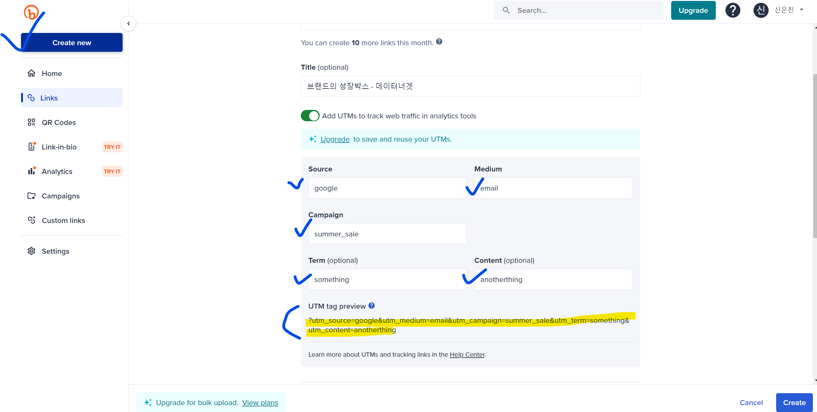 UTM 적용 결과 링크를 넣으면 디코딩한 결과도 볼 수 있어 내가 어떤 캠페인 명을 한글로 적었는지도 확인할 수 있습니다!