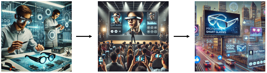하지만, 실제 제품을 출시하기 전부터 구글은 한 가지 중요한 실험을 했습니다. 구글은 제품 개발 초기, 구글 글래스의 실제 기능을 완전히 구현하지 않은 상태에서, 제품이 마치 완벽하게 동작하는 것처럼 보이는 콘셉트 영상을 제작했습니다.