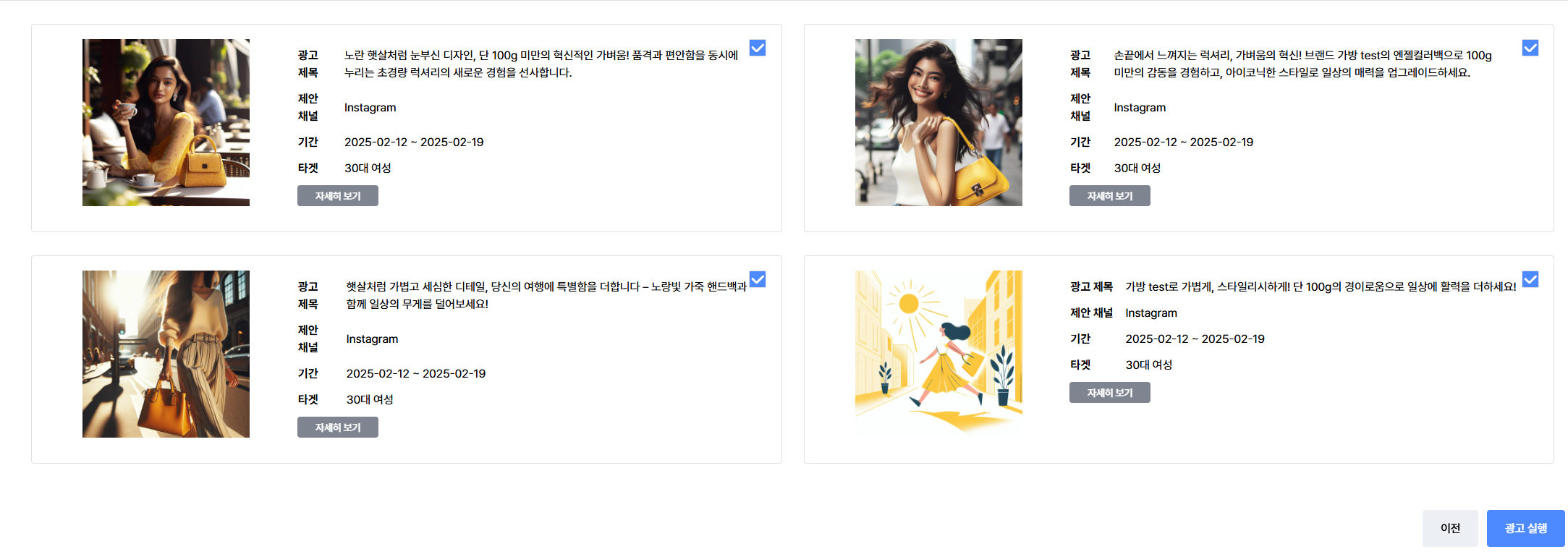 4. 자동으로 추천되는 광고 이미지와 템플릿, 광고 문구를 받아본다!